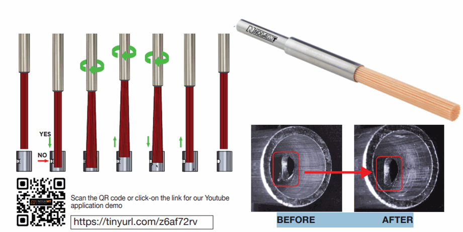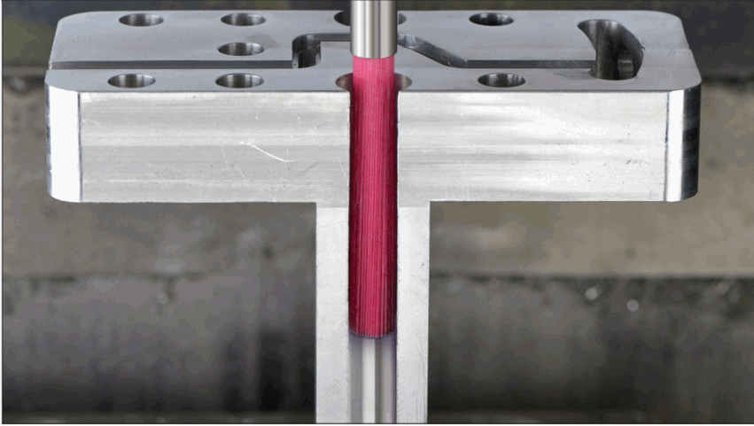 Ontworpen voor het polijsten van de binnendiameter en het verwijderen van bramen in dwarsgaten. De borstel zet uit door centrifugale krachten waardoor hij zich aanpast aan de diameter van het geleidingsgat. De cross-hole borstel is daardoor veelzijdig inzetbaar voor verschillende toepassingen.